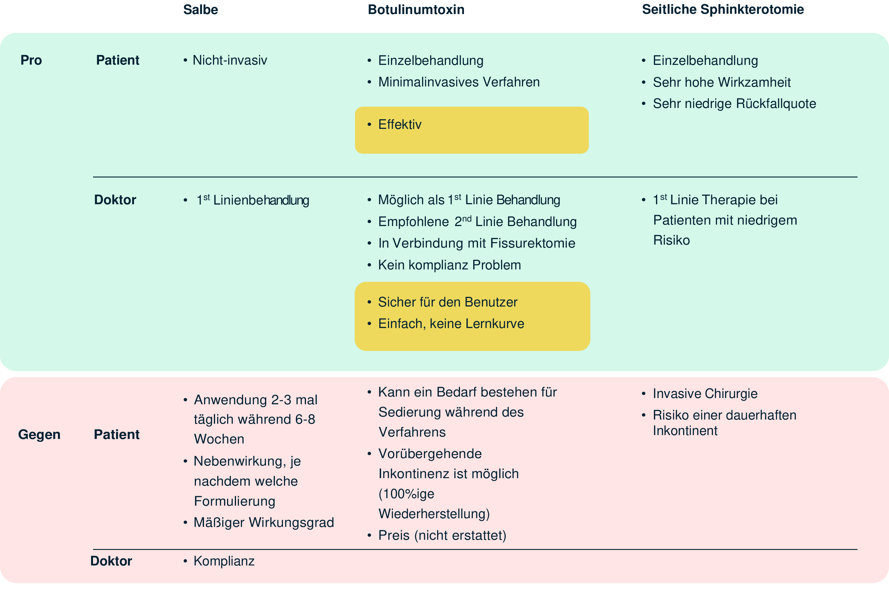 Vor- und Nachteile der am häufigsten verwendeten Behandlungen bei Analfissuren